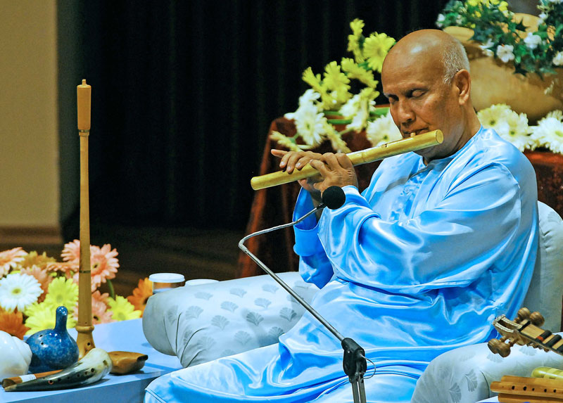 Sri Chinmoy’s music is simple, spontaneous, and appeals to a childlike spirit. He typically alternates between peaceful melodies played on the Western flute or Indian esraj, and also lively extemporaneous performances on the synthesizer, piano and organ. Sri Chinmoy also liked to experiment and try new instruments, teaching himself how to play. He often finished a concert with piano, organ or sympathiser improvisation.